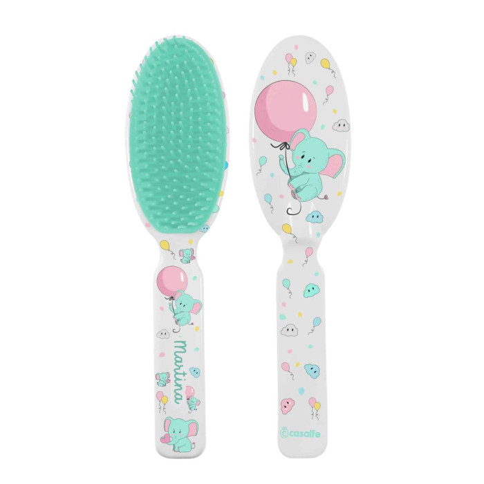 Щетка имеет идеальный размер и вес, чтобы вам было удобно пользоваться ею, а также когда он подрастет и сможет взять его в руки, не причинив себе вреда, потому что мы знаем, что он точно будет с ней играть. Мы создали текстуру и твердость шипов в соответствии с возрастом, в данном случае с 9 месяцев. Они сохраняют идеальный баланс, чтобы сделать его мягким на ощупь, щеткой можно аккуратно вычесать и очистить от молочной корочки (capacete), т.к щетинки в расчески не травмируют кожу головы и очень мягкие на ощупь.