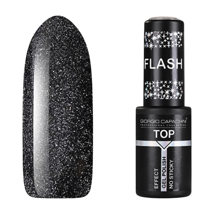 Верхнее топовое покрытие придает однофазным и трехфазным гель-лакам интенсивный светоотражающий эффект: маникюр выглядит будто россыпь звезд на ночном небе. Благодаря такому топу отпадает необходимость дополнительно приобретать гель-лаки с блестками. Достаточно покрыть финишем, и маникюр приобретает загадочный блеск и сияние. Средство имеет потрясающую глянцевую поверхность, устойчиво к царапинам, сколам и трещинам, предохраняет от выцветания. Отлично смотрится как на темных, так и на светлых оттенках гель-лака. Топ без липкого слоя.