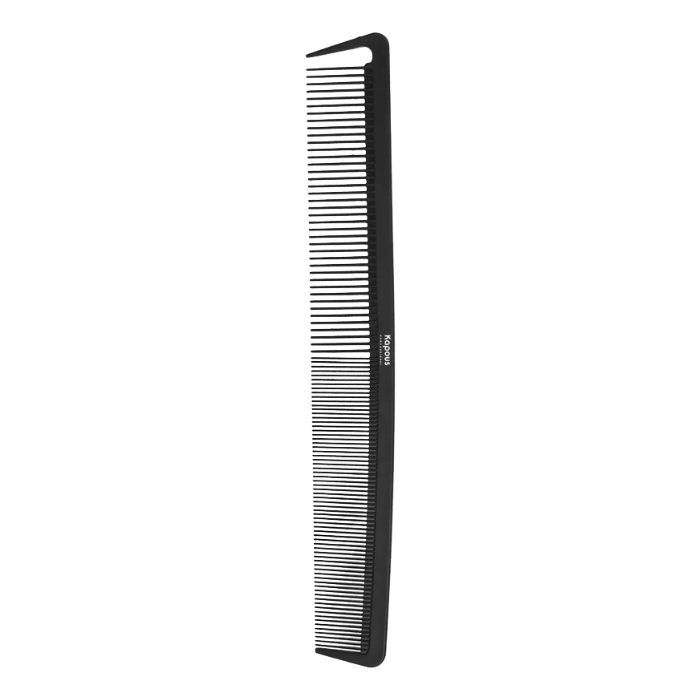 Многофункциональная карбоновая расческа для укладки и стрижки волос с комбинированными редкими и частыми зубчиками обеспечивает комфортную работу на волосах любой длины и густоты. Разделительный зубец помогает легко и быстро отделять пряди в процессе работы. Главная отличительная способность карбоновой расчески — она не плавится под воздействием высоких температур, поэтому отлично подходит для работы с термоинструментами.