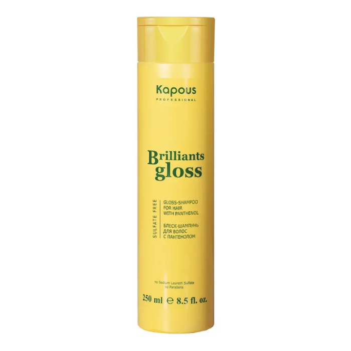 Блеск-шампунь «Brilliants gloss» подходит для ежедневного ухода за натуральными и окрашенными волосами. Эффективно очищает волосы от загрязнений и остатков укладочных средств, значительно усиливает устойчивость волоса к повреждающим воздействиям химических веществ, придаёт волосам шелковистость и блеск. Входящее в состав масло арганы, богатое уникальным сочетанием витаминов и полиненасыщенных Омега-3 жирных кислот, эффективно восстанавливает блеск тусклых волос, возвращая им естественный здоровый вид. Пантенол увлажняет волосы, укрепляет структуру, придает им плотноть и эластичность.