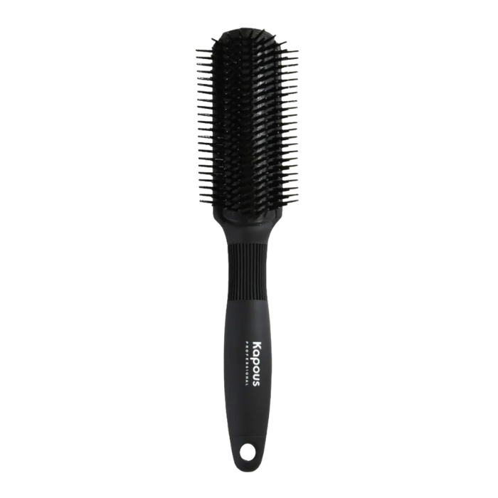 Профессиональная щетка для прикорневого объема 180°с покрытием «Soft Touch» предназначена для быстрой, легкой и удобной укладки волос и имеет 9 рядов умеренно жестких штифтов. Легко скользит по волосам и не травмирует кожу головы благодаря щетинкам со специальным тиснением и закругленными концами. Штифты из термостойкого нейлона предотвращают появление статического электричества во время расчесывания и не деформируются под потоками горячего воздуха. Ручка щетки удобна в использовании, рука не скользит и не устает при длительном применении.