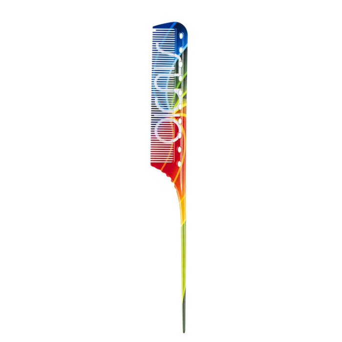 Расческа парикмахерская из поликарбоната для парикмахерских работ облегченная, предназначена для выполнения точных работ, выделения прядей и различных техник окрашивания.