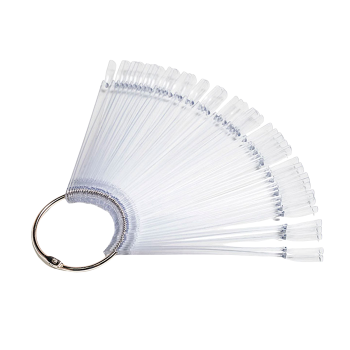 Палитра "веер" 50 шт. прозрачная для демонстрации лаков, гель-лаков, гелей, дизайнов на оси «веер» на 50 цветов. Яркая палитра, представляющая образцы лаков всегда привлечет внимание и великолепно продемонстрирует плотность лаков. Съемные палочки-типсы позволяют "примерить" каждый из образцов.